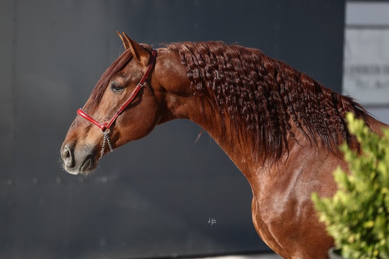 Caprichoso Mango es un extraordinario semental alazán de las mejores líneas de Bohórquez, destacando por su expresión racial, nobleza y gran calidad de movimientos. Nieto del gran Evento, desciende tanto por línea paterna como materna del legendario Albero II, lo que garantiza genética contrastada, funcionalidad y tipicidad en sus descendientes. Ejemplar con una conformación armoniosa, fuerza, elasticidad y excelentes movimientos. Ideal para criadores que buscan mejorar raza, movimientos y nobleza , tanto en Pura Raza Española como en cruzados. Enviamos semen fresco o congelado. No dudes en contactarnos para más información: info@pepeanton.com