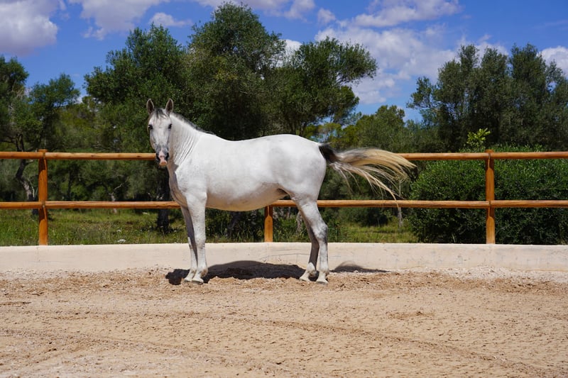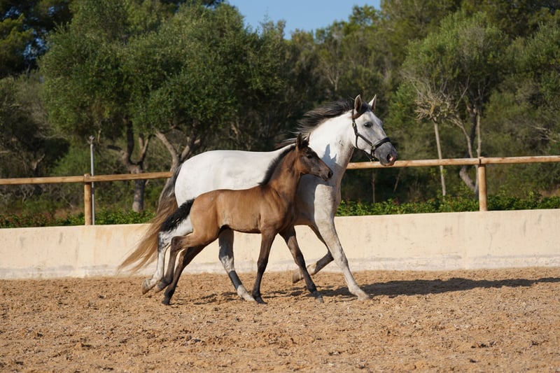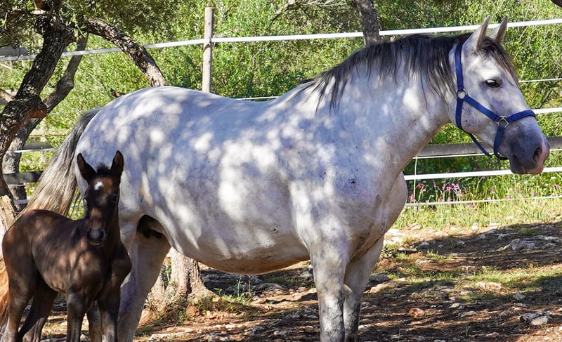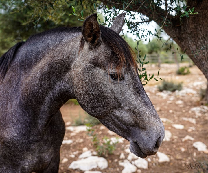 FER AGORA - a PRE rarity from the legendary lines of YEGUADA FERRERO and YEGUADA VILAIRE! Born at Yeguada Ferrero - by MAÑOSO II x JUDIO VII As a descendant of these two great stallions - she embodies the best of her ancestors! Fer Agora descends from the renowned Ferrero stud farm, which is known for its top horses - this stud farm stands for movement. Fer Agora is a true rarity, she is one of the last descendants of Mañoso II and combines the two great stallions. Her pedigree makes her a jewel in the PRE world. She is an excellent broodmare and gave birth to her wonderful filly Bienvenue des Ravella for the first time during Corona 4 years ago, all alone and without complications. The following year, Cacique des Ravella was born, a very harmonious and correctly built stallion - both foals are by Poeta de Susaeta. Then in 2023 came Ella des Ravella - a filly by LLanero de Martet, very tall and very well put together. Fer Agora has really excellent blood and very famous and successful siblings and relatives....allen voran FER BONACHON, FER GALLARDO, FER BAGO and FER TEMPRANILLO ....uvm.... These stallions are highly decorated and multiple world champions, especially FER BONACHON. Agora is enchanting and I fell in love with her eyes and her character when I found her as a 2 year old. She is a rather reserved mare, but not shy. My FER's all have a good character and are very willing to work with beautiful movements. Agora really passes on the best of her ancestors but also lets the stallion come through nicely. She is truly the born mother mare, so she took care of the nursery when the other mares were busy. Agora also lets the other foals drink from her udder, so I can well imagine that she would also stand in as a nurse mare. She is lunged and knows the saddle and bridle. My mares live in the paddock with shelter all year round, but they also know the box with paddock and are of course used to the farrier and vet, go into the hanger well and can be led by children..... A jewel - if you are looking for a great broodmare that embodies such great qualities as Agora, please write to me! We can also keep the mare here on site for you. We are happy to talk on the phone to answer any further questions you may have! Also by video call! ...or visit us at the Ravella by appointment! I will also be happy to help you with questions about transportation! welcome@es-ravella.com +491733630077 +34634314244