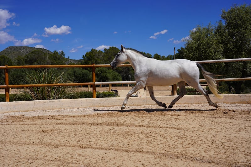 Ihr lieben Züchter - eine fantastische PRE Stute die so wunderbar aufnimmt und vererbt - sie läßt den Hengst immer hervorragend durchscheinen in ihren Fohlen! Gerne kann sie von uns vor Ort noch gedeckt werden mit dem Hengst Eurer Wahl! Wir unterstützen auch gerne bei der Beratung wenn ihr es möchtet! FER AGORA - eine PRE Rarität aus den legendären Linien von der YEGUADA FERRERO und YEGUADA VILAIRE! Auf der Yeguada Ferrero geboren - von MAÑOSO II x JUDIO VII Als Nachfahrin dieser zwei großen Hengst - verkörpert sie das Beste ihrer Vorfahren! Fer Agora stammt aus dem renommierten Gestüt Ferrero, das für seine Spitzenpferde bekannt ist ab - dieses Gestüt steht für Bewegung. Fer Agora ist eine wahre Rarität, ist sie einer der letzten Nachkommen von Mañoso II und verbindet die zwei großen Hengste. Ihre Abstammung macht sie zu einem Juwel in der PRE-Welt. Sie ist eine exzellente Mutterstute und hat bei uns während Corona vor 4 Jahren das erste mal ihr wundervolles, bewegungsstarke Stutfohlen Bienvenue des Ravella ganz alleine und ohne Komplikationen auf die Welt gebracht. Im Jahr darauf wurde Cacique des Ravella geboren ein sehr harmonisch und korrekt gebauter Hengst - beide Fohlen stammen von Poeta de Susaeta ab. Im Jahr 2023 kam dann Ella des Ravella - ein Stutfohlen von LLanero de Martet, sehr groß und sehr gut aufgestellt. Fer Agora hat wirklich ganz hervorragendes Blut und sehr berühmte und erfolgreiche Geschwister bzw. Verwandtschaft....allen voran FER BONACHON, FER GALLARDO, FER BAGO und FER TEMPRANILLO ....uvm.... diese Hengste sind hoch dekoriert und mehrfach Weltmeister besonders FER BONACHON. Agora ist zauberhaft und ich habe mich damals als ich sie 2jährig gefunden habe in ihre Augen und ihren Charakter verliebt. Sie ist eine eher zurückhaltende Stute, aber nicht scheu. Meine FER´s sind allesamt mit einem guten Charakter ausgestattet, und sehr arbeitswillig mit schönen Bewegungen. Agora gibt wirklich das Beste ihrer Vorfahren weiter und lässt aber auch den Hengst schön durchkommen. Sie ist wahrlich die geboren Mutterstute, so kümmerte sie sich um den Kindergarten wenn die anderen Stuten beschäftigt waren. Agora lässt auch mal die anderen Fohlen trinken, daher kann ich mir gut vorstellen, dass sie auch als Ammenstute einspringen würde. Sie ist longiert und kennt Sattel und Trense. Meine Stuten leben ganzjährig auf der Koppel mit Unterstand, kennen aber auch die Box mit Paddock und sind natürlich Schmied und Tierarzt gewöhnt, gehen brav in den Hänger und sind von Kindern zu führen..... Ein Juwel - wenn Sie eine tolle Zuchtstute suchen, die so tolle Eigenschaften verkörpert wie Agora schreiben sie mich an! Wir können die Stute auch noch hier vor Ort für Sie beisammen lassen. Gerne können wir telefonieren um Ihre weiteren Fragen zu beantworten! Gerne auch per Video Call! ...oder besuchen Sie uns auf der Ravella nach Terminvereinbarung! Die letzten beiden Bilder zeigen zwei ihrer Nachkommen Bienvenue dés Ravella Stute von Poeta de Susaeta jetzt 5-jährig und Cacique dés Ravella 4-jähriger Wallach von Poeta de Susaeta. Cacique bestreitet Turniere und gewann das letzte mit einer Wertnote von 73.80% Auch bei Fragen zum Transport helfe ich Ihnen gerne weiter! Wir haben Erfahrung mit weltweiten Transport. welcome@es-ravella.com +491733630077 +34634314244