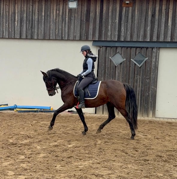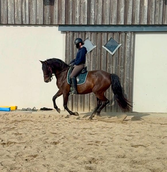 Tolle 11 Jahre alt PRE Stute, 163cm groß mit voller Abstammung. Sie ist gut dressurmäßig geritten und befindet sich aktuell ungefähr auf A Niveau. Sie war einige Zeit in Beritt und wurde da zum Schluss auch etwa im Reitunterricht mit genutzt. Auf dem Turnier wurde sie nun auch einmal vorgestellt und hat das auch toll gemeistert. Im Umgang ist sie super brav und immer gut händelbar. Mit Reiter zeigt sie keine Unarten und arbeitet gerne mit. Sie hat aber schon etwa go und will regelmäßig beschäftigt werden. Im Gelände zeigte sie sich bisher auch entspannt und verlässlich. Ein Fohlen hatte sie auch schon und wäre auch für die Zucht geeignet. Krankheiten oder Allergien sind nicht bekannt. Eine AKU darf gerne gemacht werden. Für das Probereiten, Vorreiten oder anderes Ausprobieren des Pferdes berechnen wir 35€. Beim Kauf wird dies gutgeschrieben. Gerne anrufen oder eine Nachricht senden 0157 36803742 Alle Angaben ohne Gewähr, Preisänderungen vorbehalten, Transport möglich, Onlinekauf möglich