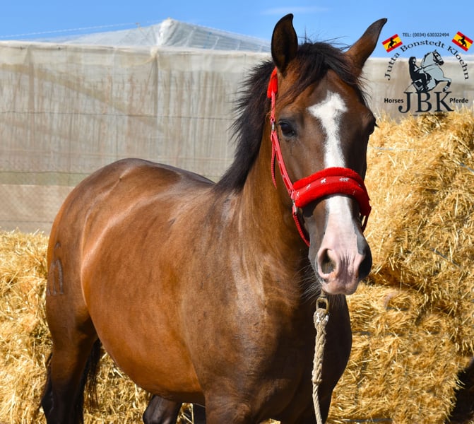 Diese bezaubernde Plaza de Armas Stute wurde am 07.03.2013. Ihr Betätigungsfeld lag bisher ausschliesslich in der Zucht. Ihre Bewegungen sind sehr ausdrucksstark mit viel Go. Ihr Harakter ist absolut zauberhaft. Sie ist super sozialisiert, komtm in einer Herde bestens zurecht udn sie ist eine exzellente Mama. Bisher hatte sie 5 Fohlen für die Hispano Araber Zucht geboren, in der sie als Zuchtstute dient. Geritten wurde sie bisher nie, kennt aber das Auflegen eines Sattels und das Longieren. Ihr Stockmass beträgt 1, 60 m.