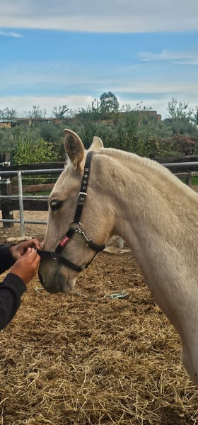 PRE fillie born on 01.2025. Registered in ANCCE Stud Book. Very pritty palomino coat in light shade. Grate pedigree: ATIZA II and PEGASO IV bloodlines. Very people friendly and calm little girl - Will be grate family horse. Also interesting to breed diluted PRE. Located in piro free area.