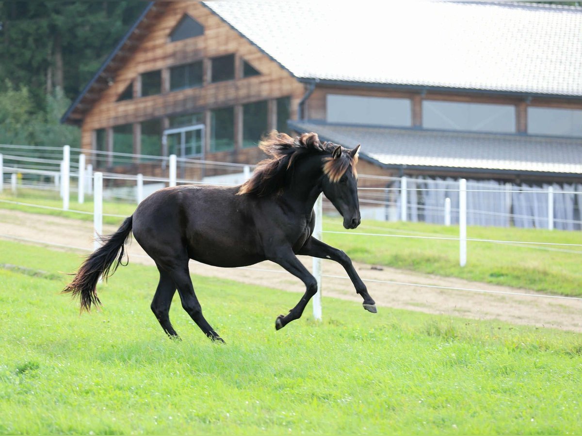 Amorosa del Cuero, geboren 2024, ist eine traumhaft schöne PRE-Stute aus unserer Zucht Yeguada del Cuero in Kefermarkt (Oberösterreich). Mit ihrer edlen Erscheinung, ihrem ausdrucksstarken Typ und ihrem schönen Behang verkörpert sie die Eleganz und Ausstrahlung des Pura Raza Española in besonderer Weise. Sie ist eine Tochter unserer bewährten Zuchtstute Azania II sowie unseres Calificado- und Mejorante-Doma-Clásica-Hengstes Zahonero XV (M.F. Escalera), was ihr Qualität, Typ und Perspektive mitgibt. Amorosa zeigt sich freundlich, verspielt und sehr zugänglich im Umgang. Sie ist neugierig, menschenbezogen und bringt eine schöne Leichtigkeit im Wesen mit. Aufgewachsen im Herdenverband mit viel Bewegung und ganzjährigem Aufenthalt im Freien, ist sie an natürliche Bedingungen bestens gewöhnt und entwickelt sich entsprechend gesund und stabil. Sie wird barhuf gehalten und kennt eine naturnahe Fütterung auf Basis von hochwertigem, belüftetem Bio-Heu und ausgewogener Mineralisierung. Eine junge PRE-Stute mit Ausstrahlung, Größe und einem besonders liebenswerten Charakter – ideal für alle, die ein edles Pferd mit Zukunft suchen. Mehr zum Gestüt auf www.purarazaespanola.at