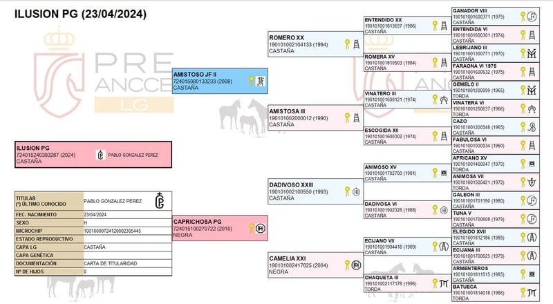 Brown PRE mare, Escalera lineage, with a refined conformation. Ideal as a future broodmare or for competition. Very good movement; I can send a recent video via WhatsApp.