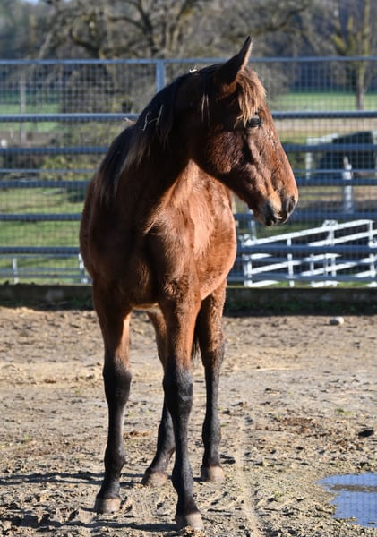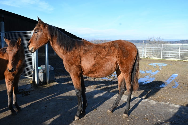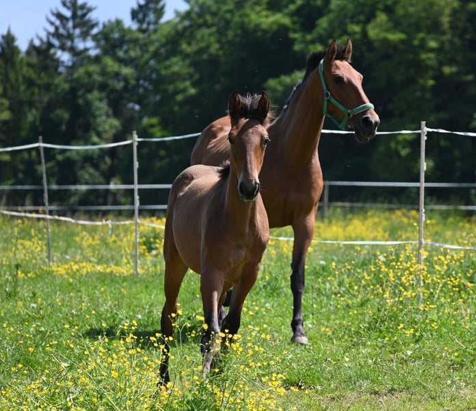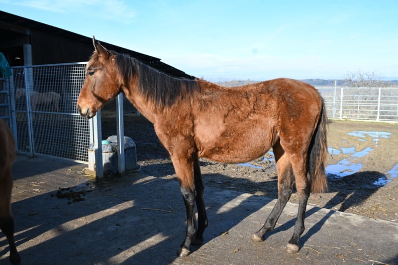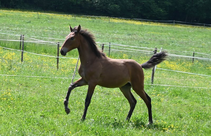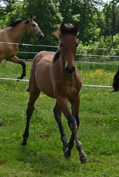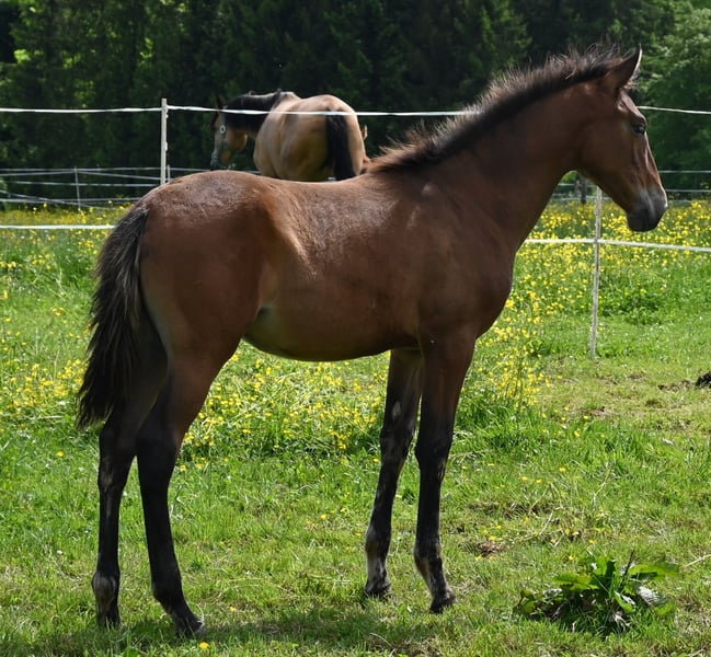 Morena Kubny is looking for her person. She is a PRE mare. Morena is very confident, clear-minded, and approachable. She is expected to grow to approximately 16.1 hands, with a baroque conformation, and possesses excellent and correct gaits. All of her foals have a solid foundation with good foal handling skills. She is accustomed to farm machinery, other animals, and children. She may also remain with us for further upbringing. Morena is weaned and was born in December 2024. Her dam is Lermosa MAZ. We are happy to introduce you to the horses from Monday to Saturday. The viewing costs €40 per session and will be refunded upon purchase.