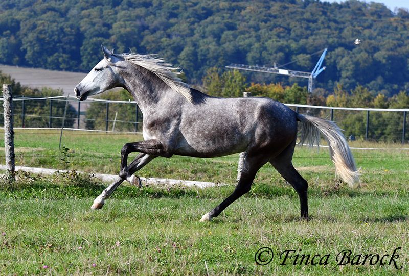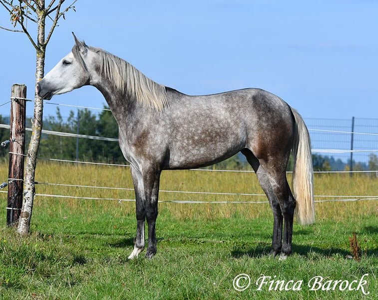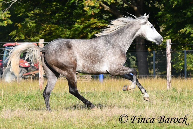 Rasse: PRE Name: Buleria AR IV Geschlecht: Stute Stockmaß: 159 cm Alter: 20.09.2022 Farbe: Schimmel Preis: 9800 € Vater: Zurito MIBXBII v. Algabeño MIBXII Mutter: Dakota CB v. Quebrado HBM II Buleria ist eine super süsse hochbeinige Maus mit einem freundlichen Charakter. Sie kennt das longieren am Kappzaum mit Sattel und Trense. Sie ist leicht in den GGA angeritten und zeigt sich als echte Musterschülerin. Hervorzuheben sind ihre sitzbequemen Bewegungen. Sie ist neugierig und aufgeschlossen, freut sich über neue Aufgaben und macht souverän mit. Wenn krach auf dem Hof ist (Traktor, Quart, Helilandung auf dem Nachbarfeld) steht sie immer in ihrer Paddockbox und schaut sich alles genau an. So freu nach dem Motto – cool da ist was los, das muss ich mir anschauen! Buleria kennt gemischte Herdenhaltung. Bei kleinen Spaziergängen um den Hof zeigt sie sich wenig umweltorientiert und eher neugierig bei ungekannten Dingen. Mit ihr bekommt man eine junge Lady, welche bereits gute Grundlagen gelegt bekommen hat, aber noch alle Wege offen stehen. inkl. klinischer tierärztlicher Untersuchung und Röntgenbildern Kontakt: Finca Barock, Tel. 0173-696 31 81, 56291 Wiebelsheim