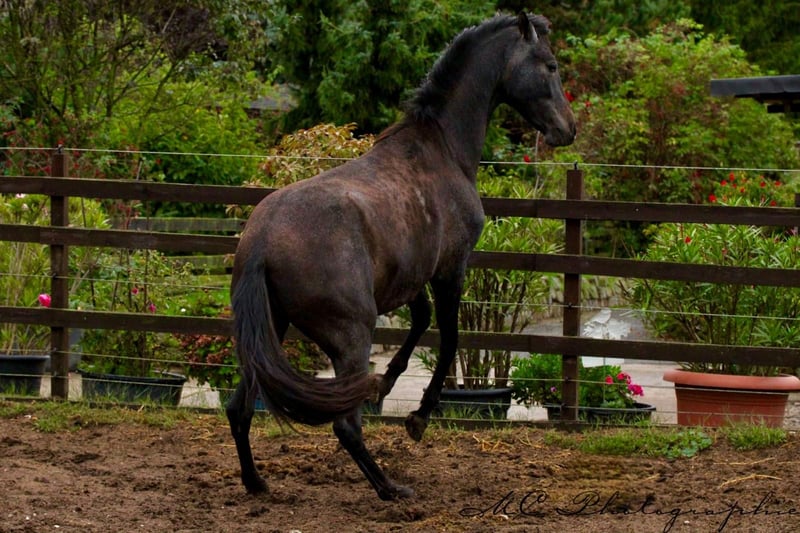 Titel: Charmante PRE Stute mit beeindruckender Erscheinung zu verkaufen Anzeigentext: Zum Verkauf steht eine wunderschöne PRE Stute aus dem Geburtsjahr 2023. Mit ihrem atemberaubenden Rappschimmel-Fell und einem geschätzem Endmaß von 160 cm ist sie ein echter Hingucker. Diese beeindruckende Stute besticht nicht nur durch ihre Schönheit, sondern auch durch ihre sanfte und ausgeglichene Art. Sie eignet sich hervorragend als späteres Freizeitpferd. Ihre Abstammung ist rein spanisch (PRE) und sie ist in jeder Hinsicht eine wahre Perle. Sie hat ein freundliches und ruhiges Wesen. Diese Stute ist ein wahrer Schatz und bereit, ihr neues Zuhause zu finden. Sie ist bereit, ihre Reise in ein liebevolles Zuhause anzutreten, in dem sie die Aufmerksamkeit und Fürsorge erhält, die sie verdient. Wenn Sie auf der Suche nach einem zuverlässigen und liebevollen Begleiter sind, dann ist diese PRE Stute genau das Richtige für Sie. Zögern Sie nicht, uns zu kontaktieren, um weitere Informationen zu erhalten oder einen Besichtigungstermin zu vereinbaren. Bitte beachten Sie, dass wir nur ernsthafte Anfragen berücksichtigen. Wir freuen uns darauf, von Ihnen zu hören und Ihnen unsere wunderschöne Stute vorzustellen.