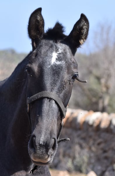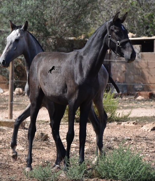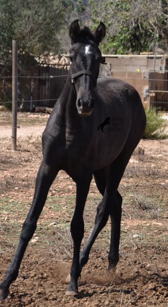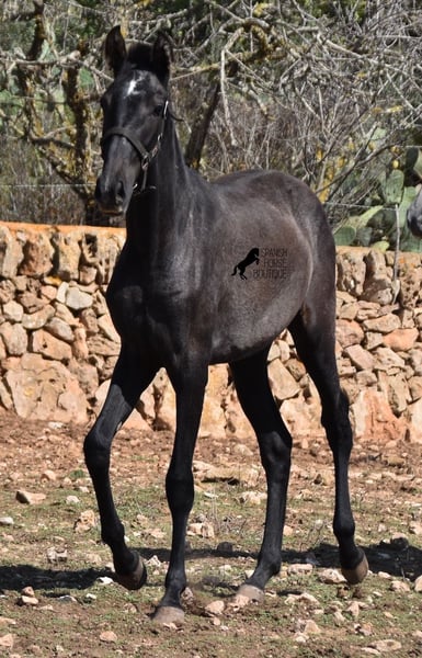 This PRE mare, born in 2023 (Andalusian with ANCCE breed certificate), is bred in the popular FERRERO line and Yeguada Militar on her father's side. This is also reflected in her open-minded and friendly character, which is immediately noticeable even though she is still completely raw. On her mother's side she is bred in modern lines, which is reflected in her size, as the young lady will certainly be 165 cm, if not more! She still has a dark coat, but she will shed. So with every coat change you have a horse with a new look ;) Thanks to the hard, stony ground and her robust attitude, she has very clear legs and good hoof quality. She lives outside 24 hours a day with a friend and is therefore well hardened in all weather conditions (it gets cold and frosty even in winter!). There is the possibility to leave her longer in Mallorca for breeding, but she would be ready to leave and come to you :) Videos and pedigree on request. Her location is Mallorca. I would be happy to organize a foal AKU on site, transport or even her trip, should you come to see her in person. Details on my site or in conversation. Saludos from Spain