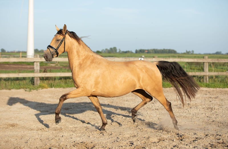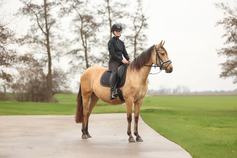 ✨ Beautiful mare born in 2022 with a golden temperament and presence ✨ This sweet and willing PRÉ mare is a true eye-catcher, not only because of her distinctive golden appearance but also due to her lovely character. She currently measures approximately 1.61 m, and given her young age, she is expected to grow a little more. Her sire is Mar Wonderful, and she has good paperwork. The mare holds a Carta. She is saddle-trained, responds well to work, and is honest and well-behaved. The rider in the photo is 14 years old, which further highlights her reliable and gentle nature. We are currently continuing her training at a relaxed pace. She is traffic-safe, sensible, and level-headed, and has already been on several outdoor rides, which she clearly enjoys. Thanks to her calm, social, and cooperative temperament, she is also very suitable as a therapy or coaching horse. The mare is easy to shoe, has recently seen the dentist, receives regular deworming, and her vaccinations are fully up to date. She has been raised in the Netherlands since foalhood. She is social and friendly towards other horses and gets along well with both mares and geldings. Last summer, she spent day and night outside in a herd. Additionally, she comes with a genetic color analysis report and is in foal to the beautiful stallion Sonador PT. She is due in early May and is carrying a pearl-gen foal, making her even more special. ✔ Versatile for various disciplines ✔ Well-behaved, sensible, and willing ✔ Healthy with no flaws An honest mare with great potential for sport, recreation, breeding, or coaching. ✔ Clinically approved in January 2026 Please only respond if you are genuinely interested! Price is for mare with foal.