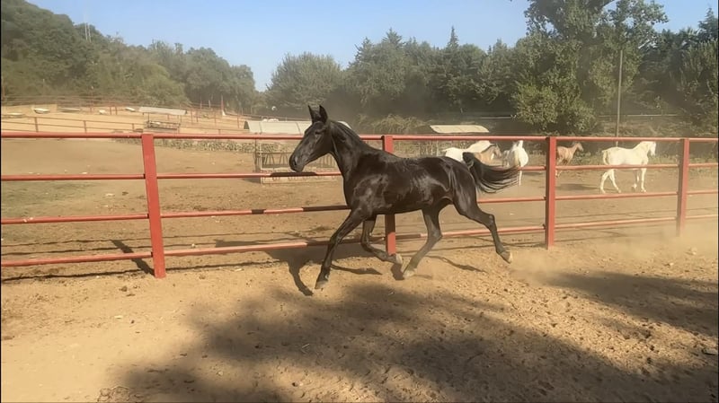 Nach langem Überlegen haben wir uns entschlossen, eine unserer besten Stuten zu verkaufen. Zarzomora Onuba. Sie ist PRE, volle Papiere. 4 Jahre alt. Zugelassen zur Zucht. Sie zeichnet sich durch ihre Bewegungen aus. Sie bewegt sich sehr gut. Vollkommen schwarz, ohne weiße Abzeichen. Sehr gute Blutlinie von Huron IX (einer der wenigen Elite PRE Hengste). Eine sehr gute Option für diejenigen, die ein Pferd mit Power suchen, um in der Dressur das höchste Niveau zu erreichen. Sie kann auch eine perfekte Option für die Züchter sein, die ihre Zuchtprogramme verbessern wollen. Sie kann hochqualitative schwarze Fohlen hervorbringen. Der Transport kann leicht organisiert werden. Mehr Informationen erhalten Sie bei uns. Besuchen Sie unsere Facebook-Seite Yeguada Sierra Onuba.