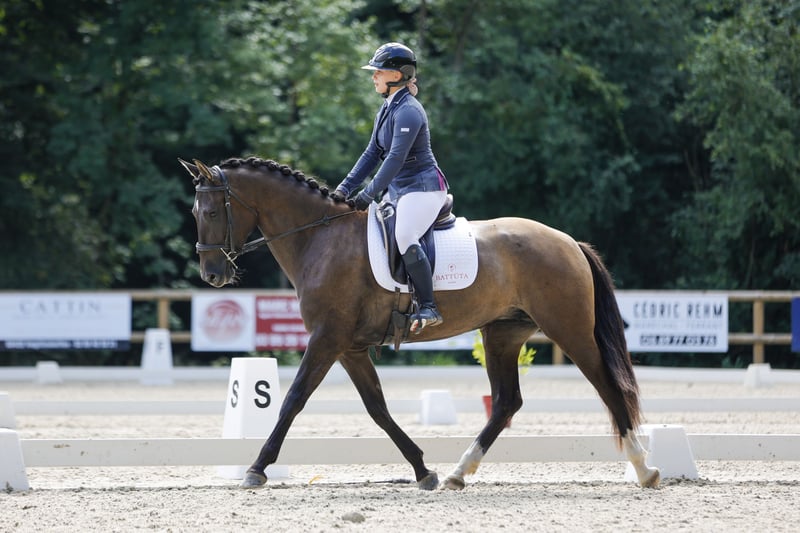 •Jument PRE PP• Jument de 4 ans avec de la taille et un physique sportif. Troya possède 3 allures de qualité et un mental extraordinaire pour son âge : 🔹très simple au quotidien 🔹véritable cheval de tête en balade (seule ou accompagnée) 🔹voyage très bien en van 🔹curieuse et avec l’envie d’apprendre Troya évolue à mes côtés depuis plusieurs années, elle est très proche de l’homme, à toujours été manipulée avec douceur et s’est toujours épanouie en troupeau. Elle aborde depuis peu un travail sérieux, sa première expérience en concours a mis en valeur son mental à toutes épreuves et son potentiel. Elle est polyvalente et pourra aussi faire plaisir à son cavalier en saut. ✅ À jour d’ostéopathe, vaccins, vermifuges ✅ Radiographiée Visible en moselle pour plus d’informations veuillez me contacter au 0637553257