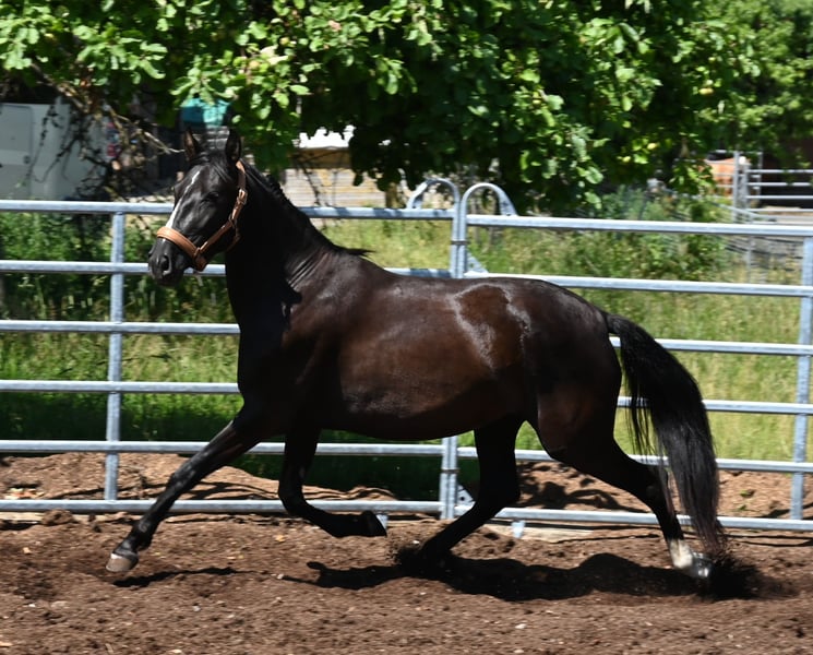 Picara Arenosas is a Lady in Black, a very elegant Pura Raza Española mare, with an excellent score and a spacious trot, which she will also use in the arena in the future. Picara was born on 07.12.2021 and of course has full ANCCE paper. She is a friendly mare and has grown up in a herd. She knows the young horse ABC. Picara is currently approx. 153cm tall and will grow to be approx. 156-160cm tall. She is regularly wormed and vaccinated, she knows the farrier and how to ride a trailer. Sire: Quebranto LXVIII Dam: Carbonero XXIX We will be happy to introduce you to the horses from Mon.-Sat. A test ride in the arena or in the field, lunging and ground work is possible for you to get to know your dream horse better. This costs €40 per time and is refunded on purchase. Booked riding lessons are not refundable. Manuela Kubny www.pferdefachfrau.com