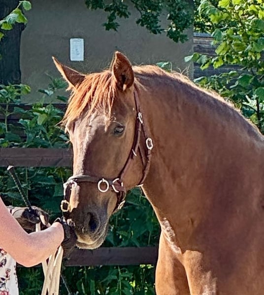Zum Verkauf steht eine elegante PRE Stute, geboren im Jahr 2020. Mit ihrem ansprechenden Fuchs-Fell und einem Stockmaß von 160 cm vereint sie Schönheit und Charakter. Sie ist bestens für die Disziplin Working Equitation geeignet und zeigt dort viel Talent sowie Lernbereitschaft. Diese freundliche und zuverlässige Stute ist ideal für Reiter, die eine talentierte Partnerin suchen, um gemeinsam erfolgreich in der Working Equitation zu starten oder ihre Fähigkeiten weiter auszubauen. Sie ist gut ausgebildet, sensibel im Umgang und zeigt eine angenehme Grundhaltung. Auch in der Dressur kann man sie sich sehr gute vorstellen. Sie war stets gesund und hat keine Unarten. Bei Interesse oder weiteren Fragen stehe ich gerne zur Verfügung. Ein Proberitt ist nach Absprache möglich. Videos können gesendet werden. Aufgrund von Reittourismus nehmen wir für das Probereiten 25 Euro die beim Kauf verrechnet werden.