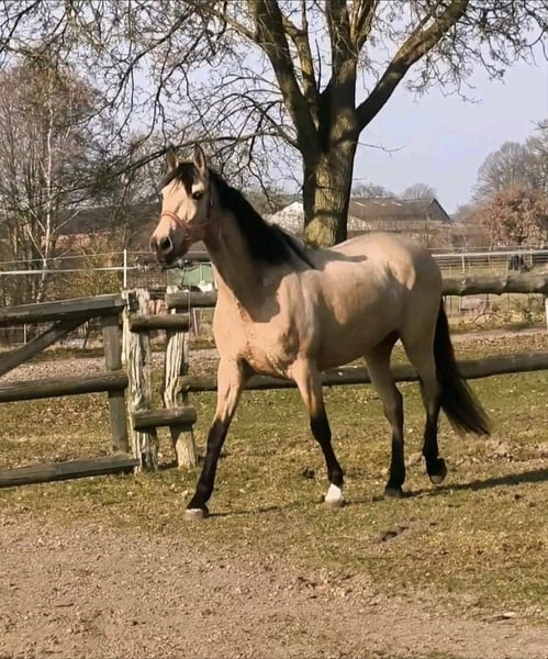 ✨QATAR SH✨ est une jument PRE incroyablement amusante, espiègle et très affectueuse, qui souhaite trouver son être cher depuis Traventhal. Sa charmante sœur RUSIA SH a déjà trouvé son foyer pour toujours depuis ici. QATAR impressionne par son extérieur très harmonieux et très baroque, ainsi que par son caractère aimable et tourné vers l'humain. Âgée de manière appropriée, QATAR est au début de sa formation en tant que cheval de selle. Elle connaît la selle et le poids du cavalier et se comporte bien sous le cavalier. La belle jument a grandi en Espagne en troupeau, avec beaucoup de contact avec la famille d'élevage. QATAR convainc donc par son bon comportement social et sa facilité de manipulation. Des radiographies sont disponibles.