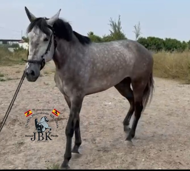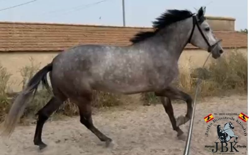 An impressive personality and excellent gaits define this PRE mare. Well-trained in all gaits, suitable for trail riding and road work, she is calm, confident, and very cooperative. Manzanita has no mare-like vices, is not bossy, and is friendly towards her herd mates and humans alike. An impeccable horse. She comes from top-quality bloodlines: her sire is the world champion Romero de Trujillo. Grandfather Engañoso IV is one of the few elite licensed stallions in PRE breeding. Her lineage is further complemented by lines from Granda Losada, Bohorquez, and Yeguada Militar. A lady with whom it will be a pleasure to continue working. Currently measures 1.61 meters.