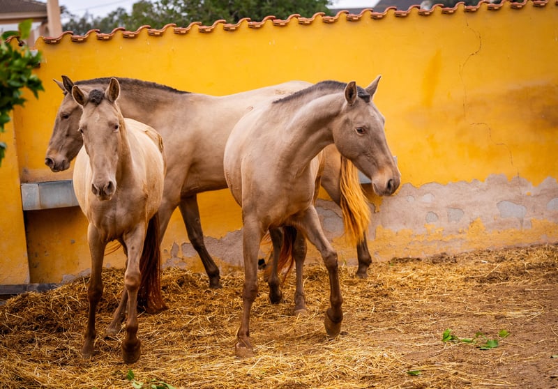 Elevage : Une des poulinières est encore en vente. Elle est approuvée et a déjà eu 1 poulain. Sa génétique de robe est : ggAeEPrlPr. Elle a Peralta, Yeguada Militar et Bohorquez dans son pedigree / Plus d'infos sur demande !