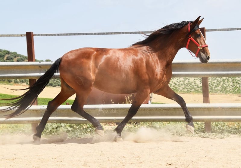 bon caractère, monté dans les allures, grand, bonnes allures et origines, origines : Alquilino Moya, Marin Garcia, Yeguada de Azores, grands-pères Engañoso VI et Kalahari-Azores sont qualifiés www.elegante-andalusier.com