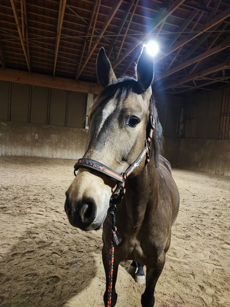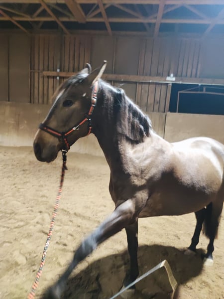 For Sale: Leisure Mare, born 2018, golden dun, 15.7 hh Lucie is an 8-year-old Andalusian mare, similar to a PRE, with a stunning golden dun coat. She stands approximately 1.60 meters tall. She is regularly ridden for leisure both in the indoor arena and in the field. During the day, she is turned out in a pasture, and at night she stays in a paddock box. She is located in Hohenbrunn near Munich. A custom saddle can be purchased additionally if desired. If interested, please feel free to send a SMS or WhatsApp message. Best regards