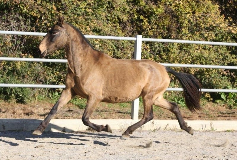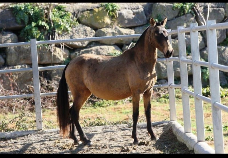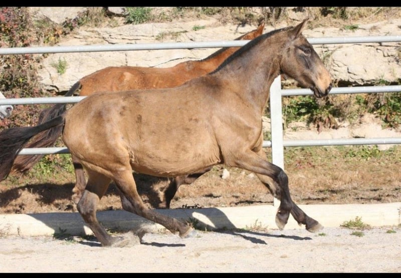Pregnant PRE broodmare seeking her person. She is currently in foal to a cremello stallion. Born in April 2017 and stands approximately 15.7 hands. The mare has an incredibly beautiful appearance. Her offspring are also stunning. She is familiar with the blacksmith and can be approached, otherwise she is quite raw.