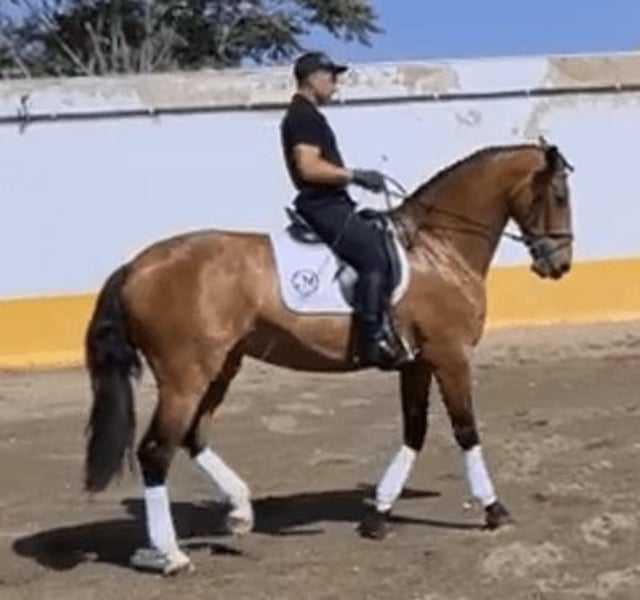 Een grote PRE-merrie, bereden en aangespannen Het is zeldzaam om zo'n merrie te vinden. Ze heeft formaat, kracht en botstructuur, maar vooral een onberispelijke houding. Een van die PRE's die imponeren door hun bouw, terwijl ze zich met de rust en het vertrouwen van een ervaren paard laten hanteren. Ze is zowel enkel- als dubbel aangespannen, en wordt ook bereden op drie gangen. Ze loopt, dribbelt en galoppeert. Ze werkt regelmatig, zonder weerstand, en is altijd bereid. Een praktische, nobele merrie met goed gerichte energie en een natuurlijke medewerking die het dagelijks leven makkelijker maakt. Haar fysieke kracht maakt haar een uitstekende keuze voor wie op zoek is naar een sterke, betrouwbare en veelzijdige merrie, die werk aan de longe en onder het zadel moeiteloos combineert. Er zijn niet veel PRE's van dit formaat en met dit opleidingsniveau voor de aanspanning: een zeldzame kans. IberHorse selecteert paarden en merries met intelligentie, structuur en hart. Als deze PRE (Purebred Spanish Horse) je interesseert, neem dan contact met ons op voor een afspraak voor een gesprek of een bezoek. Haar werk zien is genoeg om te begrijpen waarom ze zo bijzonder is.