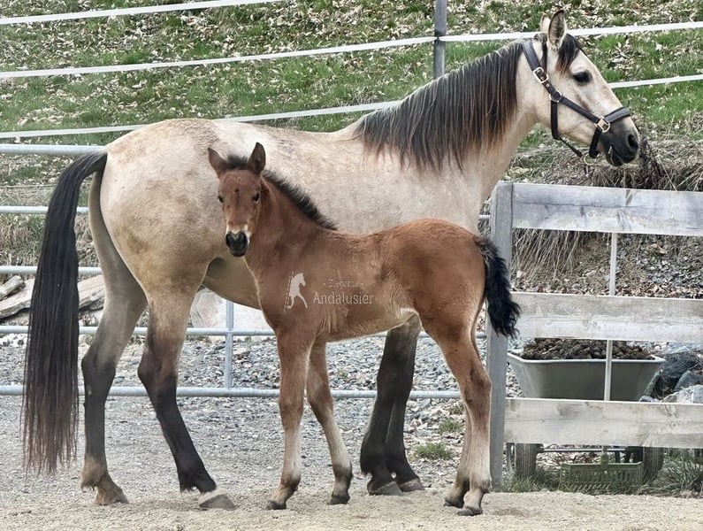 lieber Charakter, verschmust, verspielt, roh, steht mit ihrer Mutter und anderen Stuten und Fohlen draußen, barock, Braun mit Pearl-Gen, STANDORT ÖSTERREICH, Abstammung: Paco Marti, Hnos Camacho Benitez, Yeguada la Llana, Antonio Cuenca Delgado, Ururopa Gaucho III ist qualifiziert www.elegante-andalusier.com