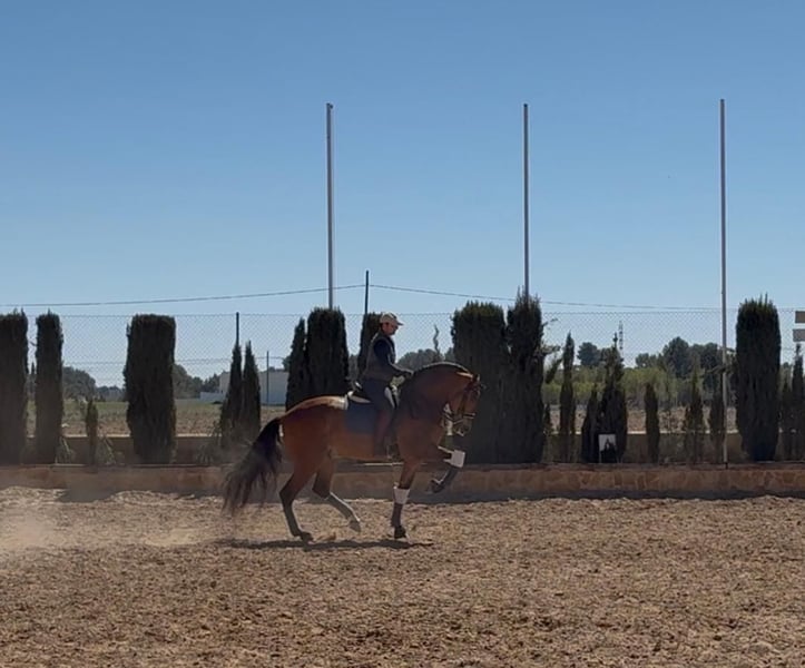 Zum Verkauf steht ein Dressurpony mit hervorragender Abstammung. Besonders hervorzuheben sind sein ausgeglichener Charakter und seine Gehorsamkeit. Das Pferd verfügt über umfangreiche Turniererfahrung und erzielte gute Ergebnisse. Es ist Vizemeister in Castilla-La Mancha in den Altersklassen 4- und 5-Jährige. Das Dressurniveau umfasst Rücken-zu-Rücken-Übungen, Unterstützungen, Pirouetten, Piaffe und Passage. Es ist geeignet für Reiter ohne allzu viel Erfahrung. Das Pferd hat Erfahrung auf Messen und bei Kutschenfahrten (nicht rückwärts). Im letzten Jahr wurde es von seiner jetzigen 13-jährigen Besitzerin für Kinderprüfungen trainiert.