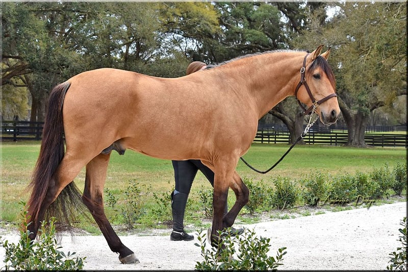Si vous recherchez le facteur « wow », Rayito est votre cheval. Né en 2016, il a été importé aux États-Unis en tant que yearling. Il a été commencé en selle par un entraîneur portugais. Il possède trois allures pures, un trot très confortable pour s’asseoir et un joli galop. Il a déjà participé à quelques compétitions, notamment en deuxième niveau l’été dernier. Actuellement, il travaille les mouvements du troisième niveau sous la guidance compétente d’un entraîneur classique du Portugal. Il a un tempérament charmant et joueur, et il se développe magnifiquement sous la selle. Il mesure plus de 1,65 m, mais pas tout à fait 1,66 m, avec un corps large et puissant qui occupe bien la jambe — tout le monde pense qu’il fait 1,68 m. Rayito est joueur, enchanteur et prêt à créer un lien avec sa personne pour toujours. Il sait qu’il est spécial. Il est sain, confiant, pas peureux, et expérimenté en randonnée. Il convient le mieux à un cavalier confiant qui apprécie un cheval puissant, réactif aux aides légères. Il est enregistré auprès du USDF/USEF, révisé par l’ANCCE, et fera un partenaire exceptionnel en compétition ou en loisir. Situé à Aiken, en Caroline du Sud. Des vidéos supplémentaires sont disponibles — n’hésitez pas à nous contacter pour plus de détails.