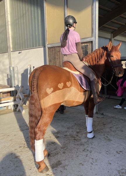 Das Reiten im Gelände macht besonders Freude mit ihm, er ist es gewohnt alleine zu gehen aber auch in Gruppen funktioniert es einwandfrei, da er generell ein sehr verträgliches Pferd ist. Er kennt es auch, dass ein Hund beim Reiten nebenbei mitläuft. Sollte bei dir in der Nähe ein Bach oder eine Möglichkeit zu schwimmen sein fürs Pferd, er kennt auch das - und liebt es.