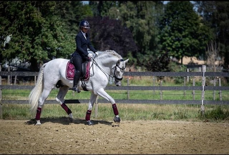 PRE Alter: 9 Jahre Größe: 1,68 m (16.1 hh) Geschlecht: Wallach Niveau: M Fundador ist äußerst sanft und freundlich im Umgang, zeigt großen Respekt gegenüber seiner Umgebung. Beim Reiten ist er sehr arbeitswillig. Er ist gewohnt, sich auf den Weg zu machen, Transport stellt kein Problem dar. Auch das Training unterwegs ist kein Problem. Er hat keine Stallgebrechen. Er ist im Zuchtbuch der ANCCE BELGICA eingetragen und ist geimpft sowie regelmäßig entwurmt. Er ist brav beim Hufschmied und Tierarzt. Spaziergänge macht er ebenfalls gerne, er ist absolut bombproof. Dressurmäßig geritten. Aufgrund von Zeitmangel wird dieser Schatz zum Verkauf angeboten. Besichtigungen in Oudenaarde, Belgien.