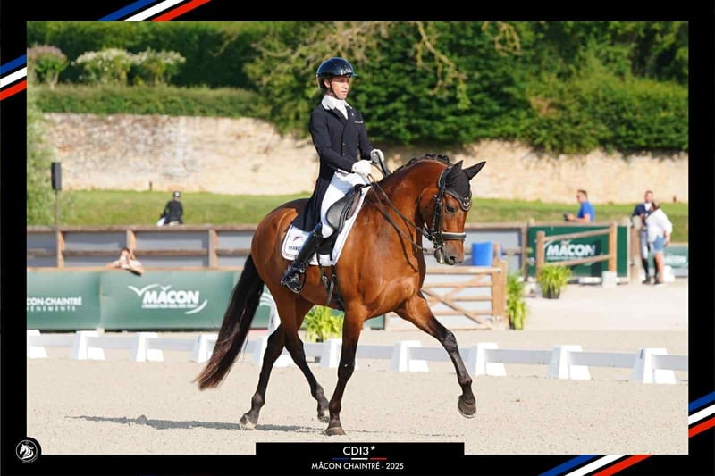 You just have to see him to understand that he has all the qualities of a top dressage horse. His natural presence, inner calm, and willingness make him a truly trustworthy partner for his rider. This 13-year-old Pure Spanish Horse gelding embodies the perfect blend of elegance, generosity, and performance. Coming from prestigious Spanish bloodlines, he is sired by KIRJAL I, a stallion renowned for his strength and charisma, and by JEFA IX, by MASAJISTA, a line known for producing supple, balanced horses with a deep connection to humans. This genetic heritage is evident in every movement: chic, flexible, and instinctively responsive. An experienced horse, DIEGO PY has consistently proven his reliability season after season: - Winner of the 2023 Grand Regional Pro 1 - 3rd place at the 2024 Grand Regional Pro Elite - Winner of the 2025 Grand Regional Pro Elite - 4th place at the international 2★ competition in Mâcon These results reflect not only his technical qualities but also his eagerness to perform well and his extraordinary consistency in competitions. Under saddle, DIEGO PY stands out for his rare stability: always willing, attentive, and disarmingly generous. He is a confident, respectful, and deeply caring horse — a true partner for life. He fully expresses himself in the collected work, revealing all the power and suppleness of his back. Piaffe and passage are performed with natural ease and impressive regularity. Always connected, never resistant, he offers a real sense of lightness and trust. His balanced, athletic build reflects the quality of his dressage: a solid, supple, and expressive horse. His harmonious movement, combined with a golden temperament, makes him particularly enjoyable for a rider seeking to progress without compromising technique or pleasure. In summary: DIEGO PY, 13-year-old PRE gelding (16.1 hh, bay) Solid experience up to Pro Elite and international 2★ level Refined training: piaffe, passage, collection Serene, expressive, and very close to humans Ideal for a rider looking for a reliable, competitive, and truly bonded partner.