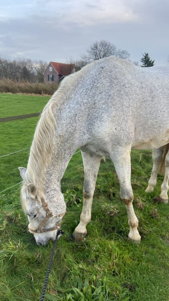 PRE-racehorse di 14 anni, reus con pedigree e tutti i documenti ufficiali Questo fantastico e completamente sicuro PRE-racehorse di 14 anni è disponibile immediatamente come cavallo in leasing. È tranquillo e affidabile nel traffico sia in ambienti urbani che rurali, e possiede tutti i documenti ufficiali e la registrazione nel libro genealogico. La settimana scorsa è stato sottoposto a controllo osteopatico. Viene offerto con una sella Prestige nuova, adattata lo scorso mese, con briglia adatta, coperta invernale e mantella per sella. Cura e salute - Cammina senza ferri, cura degli zoccoli sempre accurata - Vaccinazioni completamente aggiornate - Recentemente effettuato test delle feci e trattamento antiparassitario Su di lui - Circa 1,75 m (non misurato ufficialmente) — un gigante imponente ma amichevole - Ama saltare; adora i bastoni - Apprezza le uscite a cavallo, sia da solo che in compagnia - Salta circa 80 cm - Dressage a livello L - Sa fare la rincorsa - Sa fare il passaggio di spalla Carattere Un cavallo gentile, onesto e intelligente. A causa della sua stazza, forza e atteggiamento propositivo, non è adatto ai principianti. Collabora molto bene e ascolta attentamente, purché si sia decisi e sicuri di sé. Per un cavaliere esperto, è un cavallo da sogno: volontario, affidabile e desideroso di imparare. Per ulteriori informazioni, non esitate a contattarmi! (Preferisco che rimanga nel suo attuale maneggio a Oudekerk)