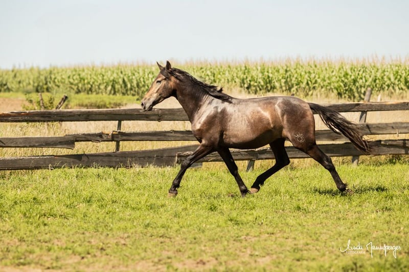 PRE Wallach, 3-jährig – barocker Typ mit Charakter & Nervenstärke Albatro ist ein ausgesprochen typvoller, sehr hübscher 3-jähriger PRE-Wallach mit feinem Charakter und guten Nerven. Er ist bereits kastriert, altersgerecht entwickelt und befindet sich noch im Wachstum. Das zu erwartende Endmaß liegt bei ca. 1,60 m. Er wird ein stabiler, barocker Vertreter seiner Rasse mit guter Substanz und harmonischem Körperbau. Albatro ist im Herdenverband auf weitläufigen Flächen mit viel Bewegung aufgewachsen und bestens sozialisiert. Aktuell lebt er in unserer „Boygroup“ zusammen mit einem Zuchthengst und zwei Jährlingen im Offenstall mit 24h Bewegungsmöglichkeit und großzügiger Koppelnutzung über den Sommer.Er kennt artgerechte Aufzucht, klare Strukturen und den täglichen Umgang. Er eignet sich ideal als zukünftiger Freizeitpartner, für barocke Reitweise oder auch für ambitionierte Freizeitreiter, die Wert auf Charakter, Typ und solide Aufzucht legen. Auf Wunsch kann Albatro gerne zur weiteren Aufzucht bei uns verbleiben oder zu einem gewissenhaften Bereiter ein paar Ortschaften weiter gebracht werden und dort eingeritten. Weitere Informationen und Bilder gerne auf Anfrage. PRE Gestüt MJ Magic Joy