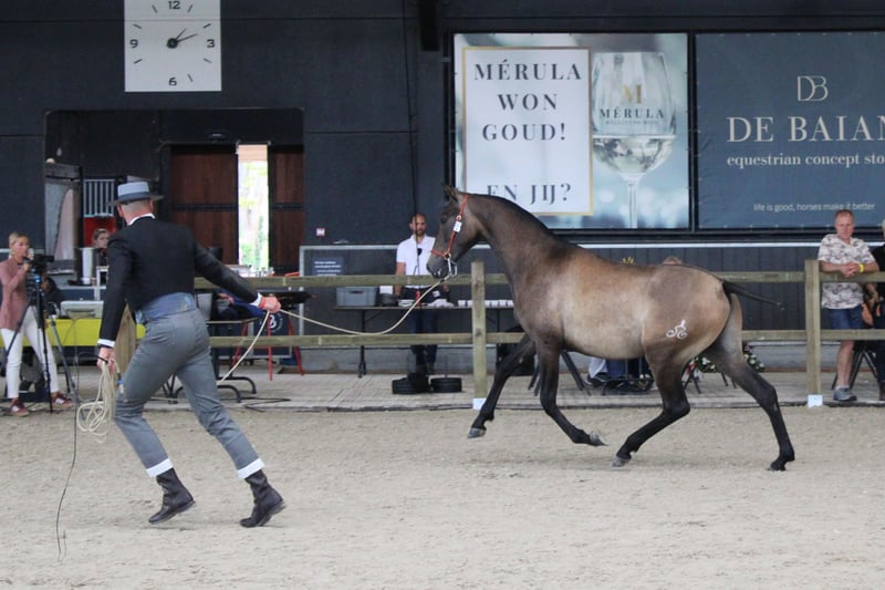 Baronet del Abadia è nato da noi il 26.02.2023 dalla nostra fattrice Gracia IV e Doblón-TR (ultime 3 foto). Baronet è un puledro particolarmente bello e ben costruito. Ha un passo molto buono, un trotto elastico e un galoppo ampio e in salita. Questi movimenti li deve sicuramente anche a suo padre Doblón-TR, stallone elite e figlio di Ermitaño III, il primo stallone elite all'interno del PRE. Baronet è un tipo dinamico e sportivo. Vediamo per lui un futuro molto promettente nel dressage. A fine agosto ha vinto una medaglia d'oro nella categoria dei puledri di un anno al Campeonato Centro Europeo a Bruges. Ha ottenuto il punteggio migliore sia per morfologia che per movimenti. Baronet è un cavallo estremamente onesto, è molto rispettoso e volenteroso. Il trasporto, il maniscalco, il veterinario, ecc. non rappresentano alcun problema. Chi desidera dargli il tempo di svilupparsi e crescere insieme a lui riceverà molto indietro da Baronet. Le registrazioni RX sono disponibili. Per ulteriori informazioni contattare elabadia@telenet.be o +32(0)489361015. Siamo situati in Belgio, nella regione di Veurne. Sempre benvenuti per una visita senza impegno al nostro allevamento!