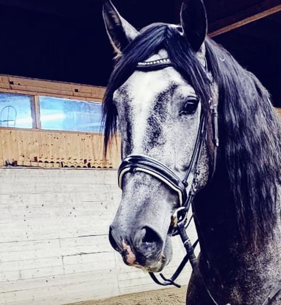 À vendre, un étalon PRE extrêmement gentil et fiable, âgé de 4,5 ans, avec une excellente lignée provenant de Yeguada Militar et de la lignée Cartujano. Ce jeune étalon se distingue par son caractère équilibré, sa sérénité et ses allures impressionnantes et amples. Il est très docile au quotidien et facile à monter, également parfaitement adapté aux cavaliers moins expérimentés ou hésitants. Orgulloso prend plaisir à sauter et possède un véritable talent. Sûr en extérieur, attentif et confiant. Même sous la selle, il se montre désireux d'apprendre, agréable à monter et très confortable dans la main. Un cheval de rêve à tous égards.