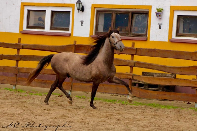 **Sale ad: Elegant PRE stallion in his prime** For sale is an impressive PRE stallion, born in 2022. This young gray stallion impresses with his elegant appearance and a height of 157 cm. He already shows great talent and potential in dressage. **Characteristics:** - Breed: Pura Raza Española (PRE) - Sex: Stallion - Year of birth: 2022 - Color: Grey - Height: 157 cm - Discipline: Dressage This stallion is not only an eye-catcher, but also a promising partner for ambitious dressage riders. If you are interested and would like further information, please do not hesitate to contact us.