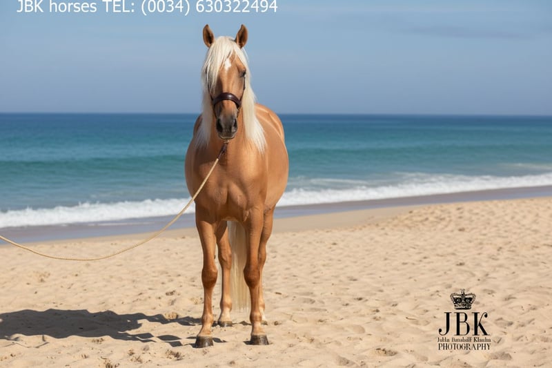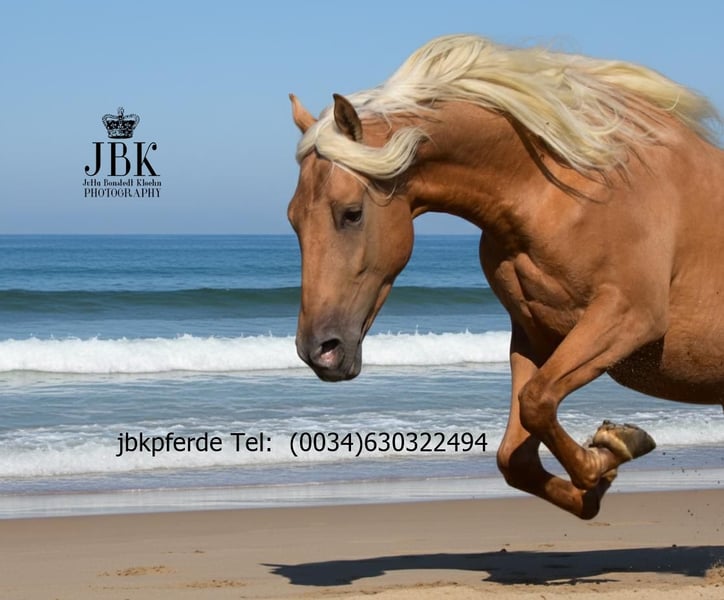 PRE GELDING BOOMERANG is looking for a home A PRE gelding to fall in love with: Boomerang was born on January 1, 2022. He was gelded at the age of 3 in a clinic. Boomerang is a very intelligent horse with a quick understanding. He also shows great agility and has the potential for later Working Equitation. He will also be suitable for dressage and baroque riding. He is already familiar with the saddle on his back, lunging, and putting on a bridle is no problem. You can also lie on his back when he is saddled. He does all of this very decently. He has first-class bloodlines. Remche XXIII from the Fraga stud is calificado approved and he also carries the title "Improver of his breed." With Marin Garcia, Lovera, Paco Marti, Bravo Martinez, and Escalera, the bloodline is excellently rounded off. He is registered as a Perla (palomino) in ANCCe. He was also approved as a stallion. He currently stands at 1.63 m and will naturally grow until he is about 7 years old. A noble rough diamond. Boomerang has 16 X-rays with no findings.