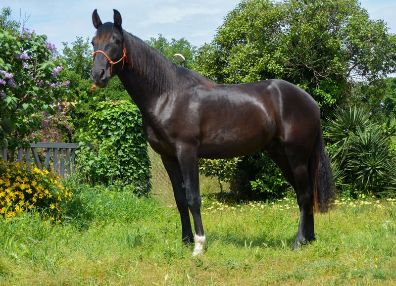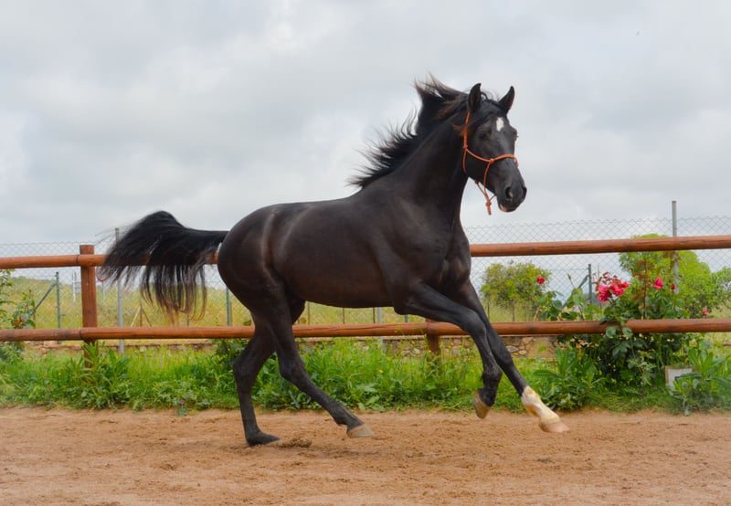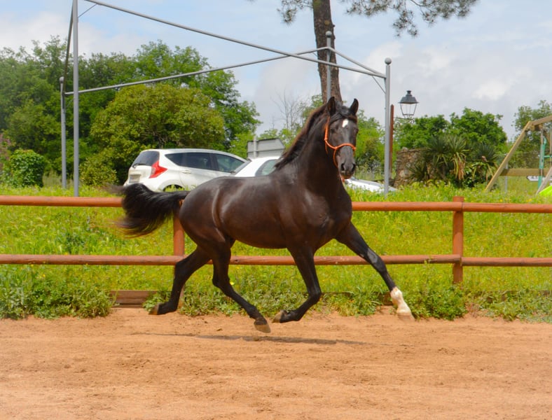 CORREFOC black PRE colt, 3 years old, 165 cm tall, recently entered from the field with very good movements and conformation, starting his breaking-in process and beginning to be ridden.