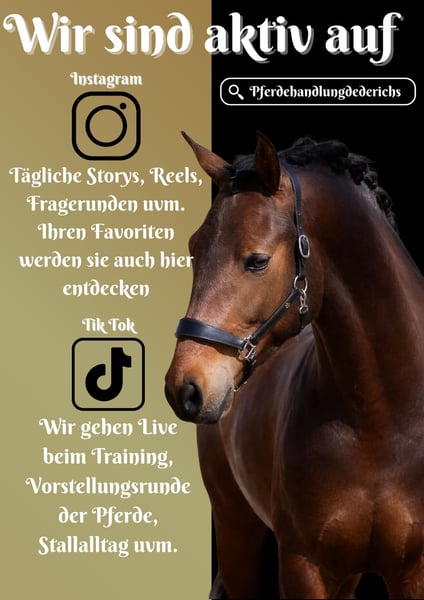 Viento ist ein 4 Jähriger PRE Wallach ca. 1,68 abstammend von: Poeta de Susaeta, Cacique x Emigrante iE ( bis Dressur - S*** erfolgreich) *Viento* steht im wunderschönen Warmbluttyp und bringt 3 gute GGA mit. Ein Pferd das sich für Sport und Freizeit eignet. Er geht altersentsprechend sehr schön in der Bahn, ist absolut cool und unerschrocken. Bietet sich rittig an und gibt einem immer ein sicheres Gefühl. Im Gelände geht er alleine und in der Gruppe auch in fremden Umgebungen. Wir haben ihn bereits ohne Sattel geritten, er ist für jeden Spaß zu haben. Er bringt zu diesem tollen Charakter auch genügend Potenzial mit. Ein Traumpferd in jeder Hinsicht. Im Umgang Menschenbezogen und verschmust, erobert schnell die Herzen. Pferdehandlung Dederichs – Ihr Partner für den Pferdekauf Kontakt & Erreichbarkeit: Anfragen bitte ausschließlich telefonisch unter 0173/9792139 Montag – Freitag: 09:00 – 18:00 Uhr Samstag: 09:00 – 15:00 Uhr Sonntag: Ruhetag Folgen Sie uns auf Social Media! Erleben Sie unseren Alltag mit den Verkaufspferden auf Instagram, TikTok & Facebook unter Pferdehandlung Dederichs Rabatt: Bei sofortiger Mitnahme Ihres neuen Traumpferdes erhalten Sie zwischen 5 %– 10 % Rabatt Probereiten & Vorführen: • Probereiten: 40 € pro Pferd (max. 2 Reiter), Betrag wird beim Kauf angerechnet • Feiertage: Proberitt 50 € • Vorführung durch unsere Bereiter: 30 € pro Pferd (Vorreiten, Bodenarbeit etc.) Ankaufsuntersuchung & Transport: • Viele unserer Pferde besitzen bereits eine AKU • Sie können selbstverständlich Ihren eigenen Tierarzt mitbringen • Gerne organisieren wir eine Untersuchung • Wir unterstützen Sie auch gerne beim Transport ins neue Zuhause Weitere Verkaufspferde: In unserem Stall stehen weitere Verkaufspferde, die noch nicht online sind. Falls Ihr Traumpferd noch nicht dabei ist, zögern Sie nicht, uns zu kontaktieren. Wichtige Hinweise: • Stockmaß-Angaben sind geschätzt und nicht exakt nachgemessen • Alle Beschreibungen sind subjektive Einschätzungen des Verkäufers und keine zugesicherten Eigenschaften