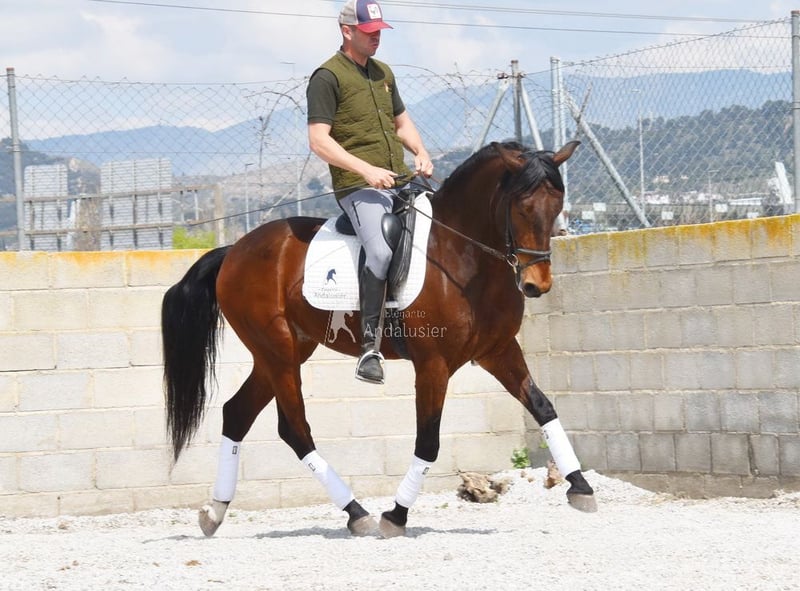 łagodny, spokojny charakter, ciekawski, towarzyski, jeżdżony w podstawowych chodach i w terenie, dobra linia hodowlana, przeszedł już badania rentgenowskie i jest Piro negatywny, linia hodowlana: Escalera, Francisco Lazo, Romero Benitez, Castillo Villafranca, ma wielu wykwalifikowanych przodków www.elegante-andalusier.com