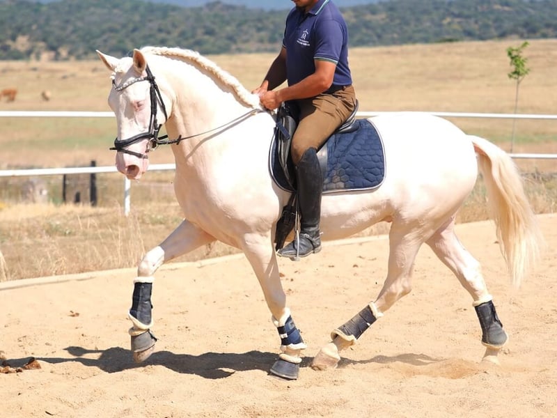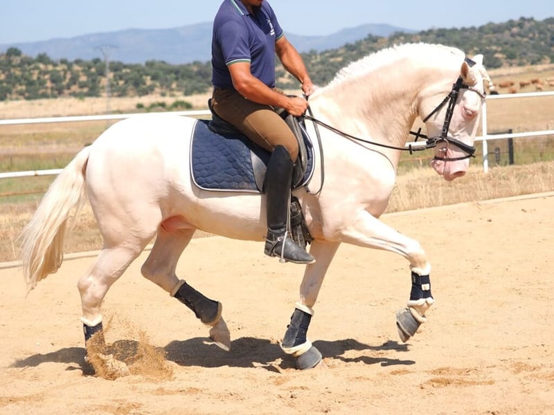 We present this attractive crossbred horse born in 2021, standing at 160 cm and featuring a striking albino coat that truly stands out. He is a gelding with a calm and noble personality, ideal for those looking for a trustworthy and easy-to-handle companion in daily routines. Currently ridden at a basic level, he shows a good attitude toward work and a cooperative mindset under saddle. He responds well to aids, shows consistent progress, and has a solid foundation to advance in dressage or any chosen discipline. His movements are broad and harmonious, with a natural rhythm that makes him comfortable and enjoyable to ride. He is a horse that provides a sense of safety both in the arena and on trail rides, always respectful and easygoing. Thanks to his friendly nature, eye-catching appearance, and development potential, this gelding is perfect for amateur riders or equestrian centers seeking a functional, versatile, and visually unique horse. A great opportunity for those who appreciate beauty, temperament, and promise.