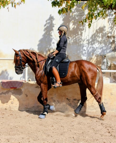 Maak kennis met Tango, een prachtige PRE-gelding met een kastanjekleurige vacht en een zijdeachtige, lange manen. Hij is 4 jaar oud en is zorgvuldig en doordacht gestart door een vrouwelijke ruiter en trainer. Momenteel staat hij op een druk terrein, waar hij zich perfect gedraagt tussen andere paarden, honden, katten, kinderen en alle bijbehorende geluiden. Hij is snaffle-mond, en onder het zadel beschikt hij over drie goed gebalanceerde gangen in de arena, passend bij zijn leeftijd. Daarnaast rijdt hij ook buiten in het landschap met andere paarden. Hij is gemakkelijk te verzorgen, niet schrikachtig, bijt, trapt of wiebelt niet. Ideaal voor een vrouwelijke ruiter die op zoek is naar een gezond, jong paard met alle basisvaardigheden al ontwikkeld. Hij is gestart met dressuur in gedachten, maar zou even goed geschikt kunnen zijn voor andere vrijetijdsactiviteiten. Een zeer verstandig paard, met uitgebreide video’s beschikbaar.