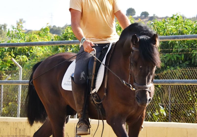 rustig karakter met een aangenaam temperament, nieuwsgierig, bereden in de basisgangen en cross-country, goede bewegingen, zwart paard met PRL-gen, afstamming: Paco Marti, Hnas San Roman www.elegante-andalusier.com