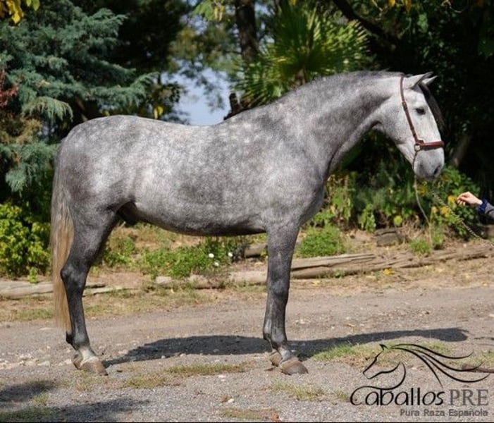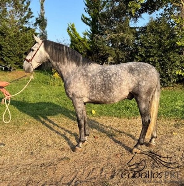 Nacido: 03/2020 Altura actual aproximadamente 1,64 m Macho Súper dulce y tranquilo caballo PRE, que ha sido montado muy bien en los niveles básicos y está listo para seguir con su entrenamiento. Tiene una excelente marcha y una línea de sangre excepcional: Plaza de Armas. Es un caballo que no deja nada que desear, siempre bien educado y dispuesto a trabajar, sin malos hábitos. Un magnífico caballo polivalente, adecuado para muchas disciplinas ecuestres. Ya cuenta con un informe radiológico sin hallazgos y está libre de piroplasmosis. Si desea más información sobre él, por favor, póngase en contacto con nosotros por teléfono. Encantados le enviaremos videos tras una conversación personal. No responderemos a solicitudes anónimas. El transporte puede organizarse a nivel mundial. Las visitas, previa cita, son posibles en cualquier momento.
