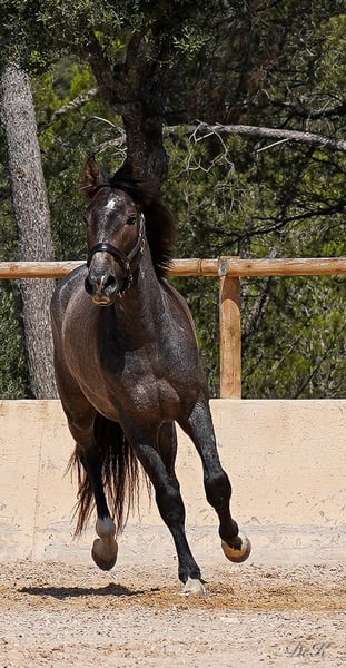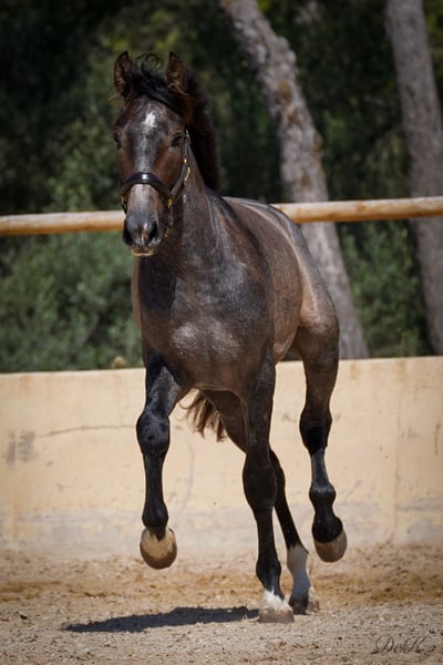Update: Cacique showed us again that he has it all at the Belearic Championships he was second with incredible 71,8 and a expectation for the future of a 7,2 - we always have to remind us that this youngster is only under the saddle for a very short period ---- Beginning of March and so he has done an amazing job. A true juwel!!! Cacique ist geritten und hat sein erstes Turnier der 4-jährigen Reitpferde bestritten und mit einer 73,.80 % Note abgeschnitten und gewonnen - wir sind sehr stolz auf ihn. Er war dabei super brav und lässig, dennoch sind wir überzeugt, dass er noch mehr Potenzial hat als er uns auf dem ersten Turnier gezeigt hat. Mit seinen herausragenden Grundgangarten und seinem super coolen Charakter hat er die Richter überzeugen können. Cacique dés RAVELLA stammt ab von dem wundervollen Rapphengst POETA de SUSAETA! ...Cacique hat viel Potenzial von seinem Vater geerbt. Sein Schritt und Galopp sind herausragend! Auch seine Rittigkeit ist ein Highlight. Poeta de Susaeta Sein Vater Cacique IX ist ein Supreme-Elite-Hengst. Er ist der einzige schwarz gefärbte Hengst, der alle 5 möglichen Abzeichen für einen reinrassigen spanischen Hengst hat. Sein Großvater väterlicherseits, Ermitano III, war der erste Hengst, der zur Elite gekrönt wurde. Fer Agora gezogen von Yeguada Ferrero, die den derzeitigen und 4 maligen Weltmeister Hengst Fer Bonachon gezüchtet haben, hat ebenfalls kräftig aufzufahren. Vater Mañoso Ii und Muttervater Judio VII sind absolute Top Vererber. Zum Verkauf steht hier ein außergewöhnlicher PRE Wallach mit viel Potenzial und Charme. Geboren im Jahr 2021, zeigt dieser junge Wallach bereits jetzt vielversprechende Anzeichen für eine erfolgreiche Karriere in der Dressur. Mit einem jetzigen Stockmaß von 1,65 cm (Endmaß schätzten wir 1,66 m) wird er der perfekte Dressurpartner. Sein harmonischer Körperbau, gepaart mit einer starken Hinterhand und einer beeindruckenden Schulterfreiheit, ermöglicht ihm eine hervorragende Bewegungsqualität. Cacique (Häuptling) hat nicht nur das Talent, sondern auch den Charakter, um weit zu kommen. Er ist ein intelligentes, neugieriges und lernwilliges Pferd, das stets bemüht ist zu gefallen. Er zeigt sich stets gelassen und unerschrocken, egal ob im täglichen Umgang oder in neuen Situationen. Er ist ein echter Rohdiamant, der darauf wartet, von seinem neuen Besitzer zum Strahlen gebracht zu werden. Wenn Sie auf der Suche nach einem talentierten und charakterstarken Dressurpartner sind, könnte dieser junge PRE genau das richtige Pferd für Sie sein. Caci ist geritten, brav and der Longe, beim Schmid und TA und natürlich im täglichen Umgang. Er wuchs im kleinen Herdenverband auf und kennt die Paddockbox. Bitte kontaktieren Sie uns für weitere Informationen und um einen Besichtigungstermin zu vereinbaren. Wir freuen uns darauf, Ihnen diesen außergewöhnlichen Wallach vorzustellen. Wir haben bereits Erfahrung mit dem Weltweiten Transport der Pferde, Wir helfen Ihnen gerne! Bitte zögern Sie nicht und schreiben Sie uns einfach an! welcome@es-ravella.com +491733630077 +334634314244 www.es-ravella.com