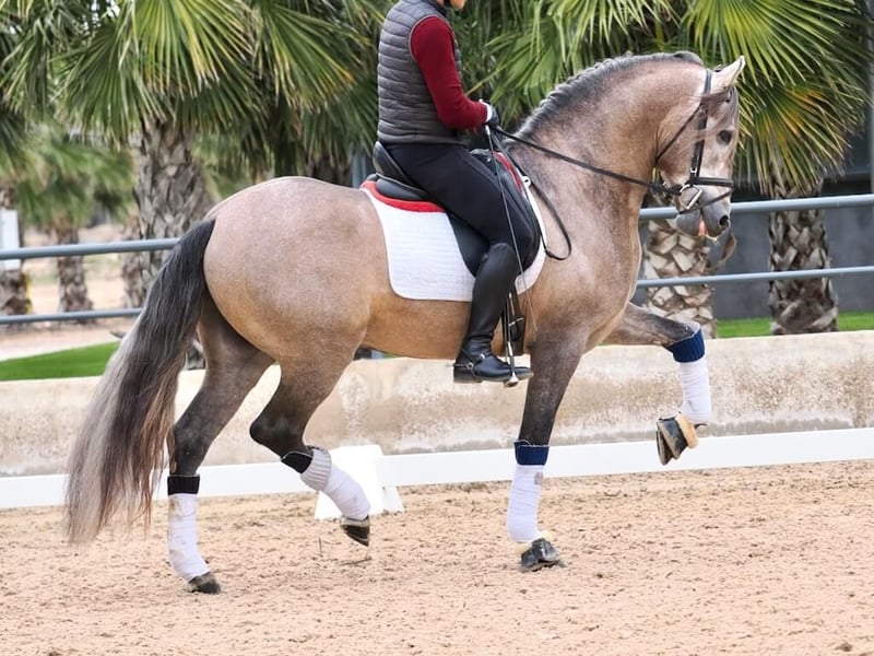 We present a striking Purebred Spanish Horse (PRE) with a beautiful grey coat, a tone that makes him highly attractive. This horse stands out for his impressive physique, with a classic and powerful morphology that combines beauty, strength, and elegance. His racial profile, with a well-developed neck and a noble, expressive head, makes him a standout in any environment. With training appropriate for his age, he has a solid foundation, ideal for continuing his development in various disciplines. He responds well both in the arena and outdoors, showing a good attitude and willingness to work. In addition to his imposing physique, this horse has a balanced and noble character, making him ideal for amateurs with promising future goals. This magnificent Spanish horse is perfect for those seeking beauty, nobility, and a horse to enjoy both in the arena and in the countryside.