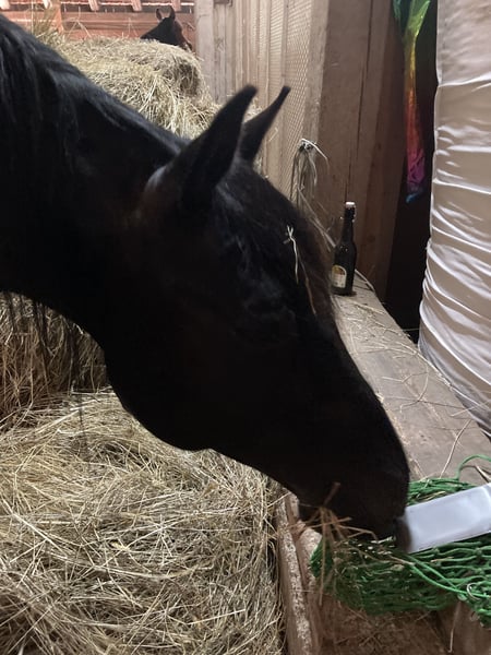 I. steht gerne im Mittelpunkt und sucht deshalb einen Menschen, den er nicht mit einem anderen Vierbeiner teilen muss. Er ist parat für die Ausbildung als (fast-)Erwachsener und arbeitet sehr motiviert auf dem Platz. Er lernt wissbegierig und liebt es augenschaulich, Zeit zu zweit zu verbringen, auch wenn die Übungen mal schwierig werden. Ich bin auf dem Platz weniger motiviert und kann ihn nicht nach seinen Interessen fördern. Im Gelände ist er rasch überfordert (bei meinen Schüler:innen würde ich ein leichtes ADHS vermuten), kommt aber grundsätzlich überallhin mit. Nach einer halben Stunde reicht ihm das eigentlich... wir anderen sind dann erst warm ;). Er bewegt sich auch in der Herde eher als Platzhirsch, solange ihm keiner die Leviten liest. Manchmal verwechselt er das mit "Führung", wozu er aber definitiv nicht taugt. Die anderen Pferde lassen ihn einfach in seinem Tun und alle haben es gut mit ihm. Die Menschen in seinem Umfeld müssen eine sehr klare Kommunikation mit ihm finden und strenge Strukturen vorgeben. Er liebt es, betüdelt zu werden und ist sehr verschmust. Er würde wahrscheinlich gerne mit ins Haus kommen und im gleichen Raum wie sein Mensch schlafen. Teeniemässig spielt er mit allem, was ihm vor die Nase kommt und treibt Schabernack - ich muss sehr oft lachen. Er wurde im September 2019 in Spanien geboren, wuchs mit Altersgenossen auf grosser Weide auf und kam dann dreijährig zur Grundausbildung in die Schweiz. Während des Verkaufsprozesses wurde eine Veränderung im Kronbein festgestellt. Bei mir ist er nun seit zweieinhalb Jahren und ich habe nie etwas davon bemerkt im Alltag. Aktuell reite ich ihn wieder an, überlasse das aber noch lieber seinem neuen Menschen.
