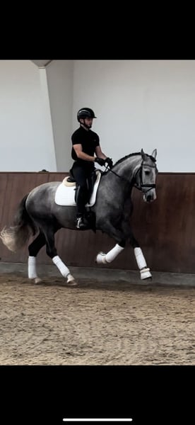 Auf Papieren kann man nicht reiten, sagt man… aber die Papiere kann man diesem edlen Traumpferd ansehen. Der junge Wallach (bereits vor Ort kastriert worden) DIGITAL G verrät seine edle Herkunft durch ein perfektes Gebäude, einen edlen Kopf und ausdrucksstarke Gänge. Ein reiner Granda (Gestüt Granda Losada) gezogener junger PRE mit ganz großen Namen im Stammbaum! Dieses Gestüt steht für Eleganz, Bewegungsqualität und Funktionalität. Der junge Wallach ist professionell auf Wassertrense in den GGA. angeritten und befindet sich weiterhin im Training. Charakterlich zeigt er sich intelligent, aufgeschlossen und lernwillig. Er geht auch bereits gut alleine und in der Gruppe ins Gelände. Er wird sicherlich noch ein paar Zentimeter wachsen, sodass das erwartete Endstockmass bei ca. 1,65m liegt. Volles ANCCE-Papier. Standort Dänemark.