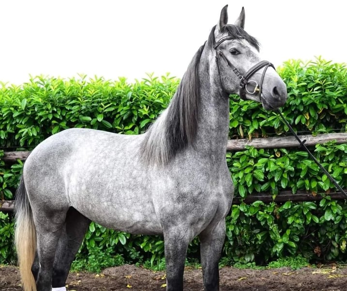 Lucero ist ein fröhliches, verschmustes und gelassenes PRE-Wallach. Er läuft angenehm und leicht im Dressurtraining, macht schöne Sprünge und unternimmt gerne Ausritte im Gelände! Im Umgang ist er äußerst brav, gelassen und keineswegs schreckhaft. Beim Aufsteigen zeigt er etwas Spannung, aber wir haben eine angenehme Methode gefunden, bei der er sich wohl fühlt. Daher halte ich Lucero nicht für geeignet für einen ungeschickten, unerfahrenen Reiter oder Reiterin. Wir steigen mit Unterstützung und Leckerli auf, aber er kennt auch nur das Aufsteigen. Videos davon sind vorhanden. Außerdem halte ich Lucero für geeignet als Hunter: Dank seines stabilen und gelassenen Charakters sowie seines flachen, einfachen Galopps wird er in der Huntersportart gut mitmachen können, sobald er eine entsprechende Ausbildung erhält. Lucero macht einen enorm guten Sprung. Videos vom freien Springen sind vorhanden. Für eine schöne Stelle ist der Preis dieses talentierten, liebenswerten Pferdes verhandelbar.