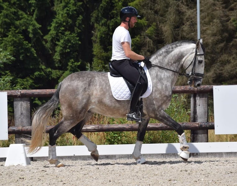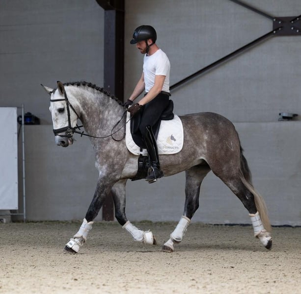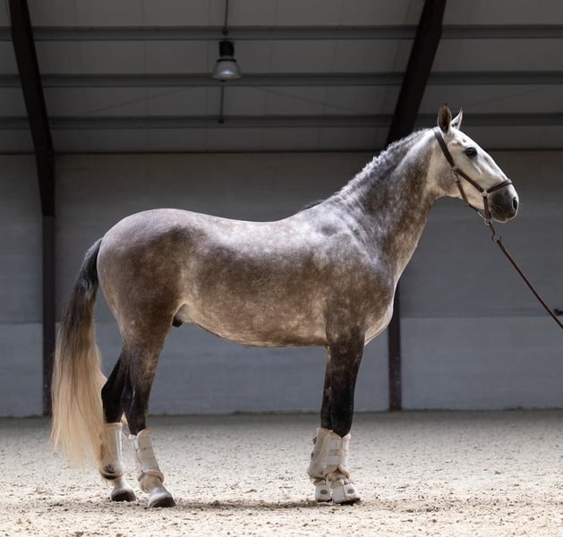 Mit Stolz bieten wir unseren wunderschönen Wallach PRE zum Verkauf an. Dieser fünfjährige Wallach, mit einer interessanten Abstammung, verfügt über alles, was sowohl für den Sport als auch für die Freizeitreiterei notwendig ist. Alvero ist ein äußerst hübsches Pferd mit freundlichem Ausdruck und einer angenehmen, arbeitswilligen Einstellung. Unter dem Sattel ist er brav und lässt sich angenehm reiten. Er denkt gut mit seinem Reiter mit und ist geeignet für jemanden, der mit einem jungen Pferd weiter wachsen möchte. Er besitzt drei sehr gute Gänge mit viel Potenzial für die Zukunft. Zudem hat er bereits mehrfach an Ausritten in fremdem Gelände teilgenommen, wo er sich vorbildlich verhält. ✔ Arbeitswillig und lernbereit ✔ Erfahren im Gelände ✔ Drei gute Gänge mit Potenzial ✔ Vollständig geprüft und zugelassen Kurz gesagt: ein zuverlässiges Pferd mit Qualität und einer goldenen Einstellung, bereit für einen neuen Reiter, um gemeinsam weiterzuentwickeln. Für weitere Informationen oder eine Besichtigung von D’artagnan stehen wir gerne zur Verfügung.