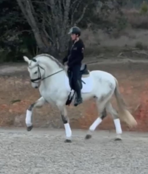 Confident ist ein eleganter 6-jähriger PRE Wallach mit vollen Papieren und einer Größe von 1,67 m. Er stammt aus den bekannten Blutlinien von Marín García, die für Qualität, Ausdruck und einen hervorragenden Charakter bekannt sind. Confident überzeugt besonders durch seine Arbeitsmotivation und seine positive Einstellung. Er ist ein Pferd, das gerne arbeitet, immer mitdenkt und schnell lernt. Dabei ist er kein typischer „fauler“ Spanier, sondern ein Pferd mit gut Energie, Motivation und Freude an der Arbeit. Aktuell befindet er sich in weiterer Ausbildung und zeigt bereits: -Seitengänge -grüne fliegende Wechsel -sehr schnelle Auffassungsgabe Trotz seiner Motivation und seines Vorwärtsdrangs bleibt Confident sehr sicher, ausgeglichen und angenehm zu reiten, wodurch er sich hervorragend für einen ambitionierten Amateurreiter eignet, der ein Pferd mit Potenzial weiter fördern möchte. Im täglichen Umgang ist er extrem unkompliziert und einfach zu handeln – wirklich eines der angenehmsten Pferde im täglichen Handling. Confident vereint Talent, Arbeitswillen, Ausdruck und einen außergewöhnlich lieben Charakter, wodurch er ein sehr vielversprechendes Pferd für die weitere Entwicklung in der Dressur ist. ✔ Aktuelle Röntgenbilder vorhanden ✔ Veterinärcheck vorhanden 📍 Standort: Deutschland 📩 Kontaktieren Sie uns gerne für Videos und weitere Informationen 🚚 Weltweiter Transport möglich